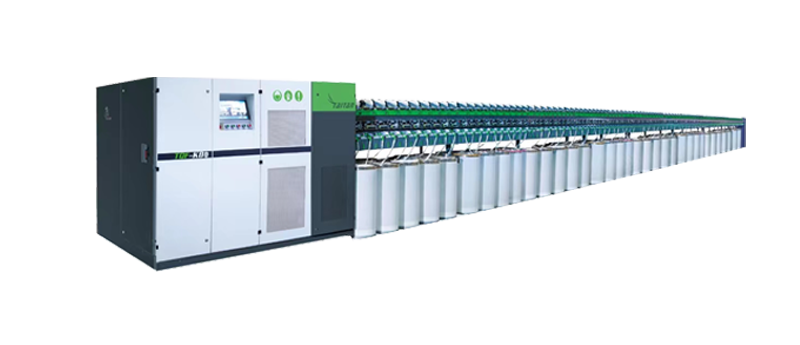 This machine adopts stepping motor to feed cotton and electronic traverse mechanism separately. The double electric box design enables one machine to produce two products at the same time. It has functions such as waste removal, electronic yarn cleaning, semi-automatic piecing, etc., and it can used with sliver cans of up to 1200MM.
