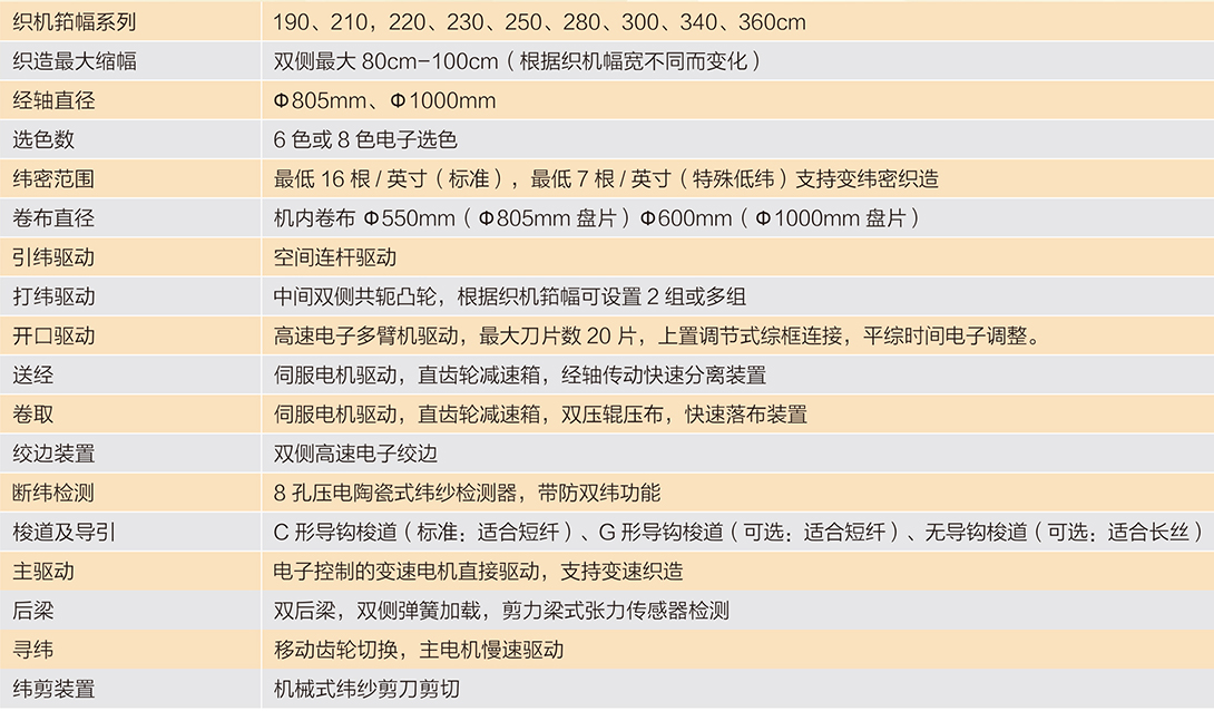 該機(jī)最高設(shè)計(jì)轉(zhuǎn)速750R.P.M ( T190),適應(yīng)于棉、混紡等纖維的織造,尤其適合于高品質(zhì)要求的服裝面料、牛仔布、色織布等織物的織造。